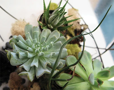 Customers are drawn not only to the contemporary sculptural look of succulents, but also their ease of care. Succulents are forgiving when it comes to watering. Dry terrariums are the favored way to display succulents. Plants like echeveria, graptophyllum and haworthia are favored for their foliage colors and shapes. You’ll often find photos on blogs and social media depicting these plants featured in unique handmade pottery or contemporary vessels. Yet, not all succulents are adapted to the low-light indoor conditions most apartment dwellers have to offer. There is an opportunity to promote lower-light succulents such as turgid haworthia, gasteria, crassula and the like.