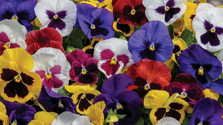 Spring Grandio pansy from Sakata Ornamentals is specifically bred for early spring production. Early blooming across all varieties — more daylength neutral. Incredible plant uniformity and matched bloom time. Series includes twelve bright colors and two mixes.