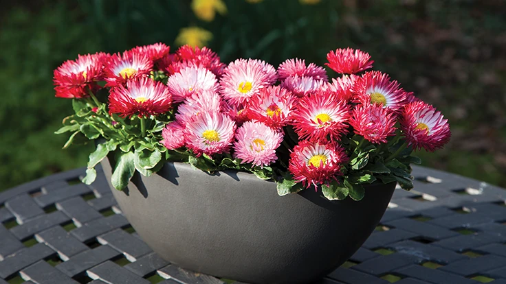 Bellis Bam Bam Mix is a new unique Bellis perennis that does not require vernalization. As the name suggests, despite being short in stature, this variety really packs a punch with its large showy blooms and looks great in packs, small pots and color bowls. Available in red, rose and mix.