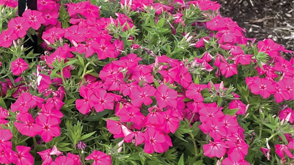 Brian Weesies, Mast Young Plants: Phlox Gisele Hot Pink (Selecta One). With abundant yellow flowers and vibrant green foliage, this vigorous cultivar was a standout all season long. It literally bloomed nonstop from the moment we put it in the ground. We liked this cultivar because it held up well to rain and overhead watering, too.