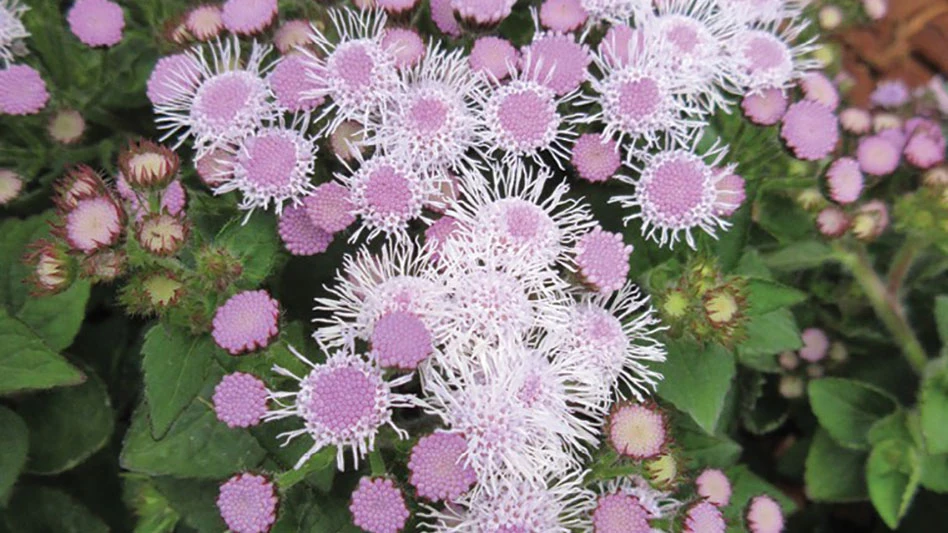 There is a reason why Ageratum houstonianum and cultivars continue to be so popular. Commonly known as flossflower, this native of Mexico, Guatemala and Belize has a long track record as a frost-tender, seasonal bedding plant (Asteraceae family). While the most seen varieties feature blue-toned flowers, there are also white and pink selections. Do note that in warmer climates, this plant has become a major weed, so caution is warranted. I’ve used many of the blue varieties as a “cooling color” with most selections under 15 inches in height. The shorter forms are excellent “edgers”, bedding components and container plants. Taller selections in the 24-30 inches range exist for both display and cutting purposes. Don’t confuse this plant with the “hardy ageratum” or “mistflower” (Conoclinium coelestinum) which has similar flowers but is hardy to Zone 5 and can be quite rambunctious.
