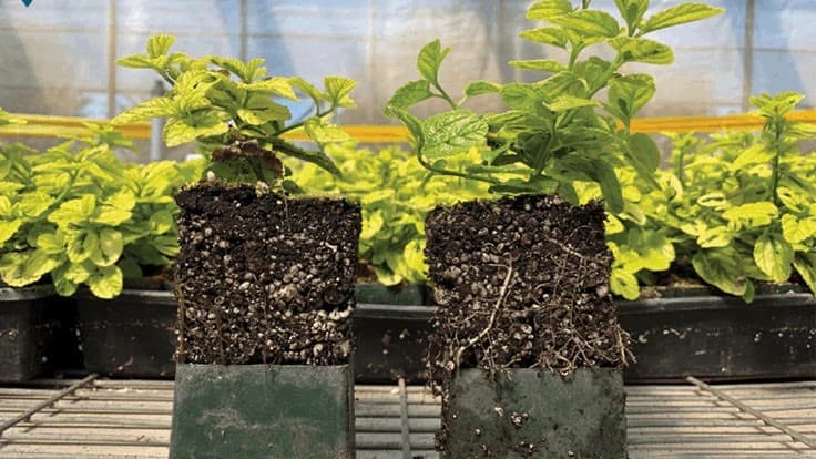 Greenhouse growers produce plants in containers or pots, and containers only have so much soil volume they can explore and colonize before they become rootbound. “Mycorrhizae penetrate into the smallest pore spaces in the soil or growth media that otherwise would be unavailable to the roots,” Racsko says, adding that soil-bound nutrients require the microbial activity provided by mycorrhizae for uptake.