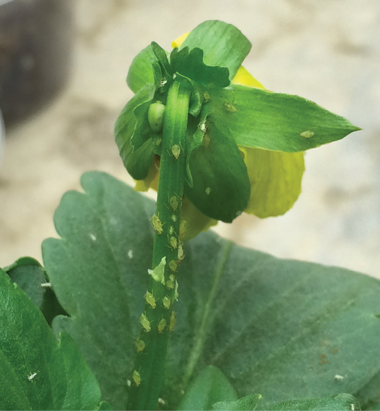 Aphids are commonly found feeding in large groups on new growth areas of plants but can also be located on stems, buds and lower leaves. This pest damages crops by: