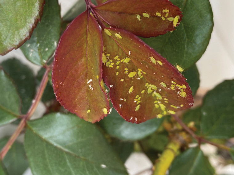 - Honeydew secretions that can lead to black sooty mold on leaf surfaces.