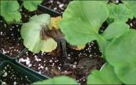 Promptly remove severely infected plants to reduce disease pressure. Place severely infected plants in a plastic bag before removing them from the greenhouse to reduce spore spread. Keep garbage cans covered so spores are not released into the greenhouse via air currents.