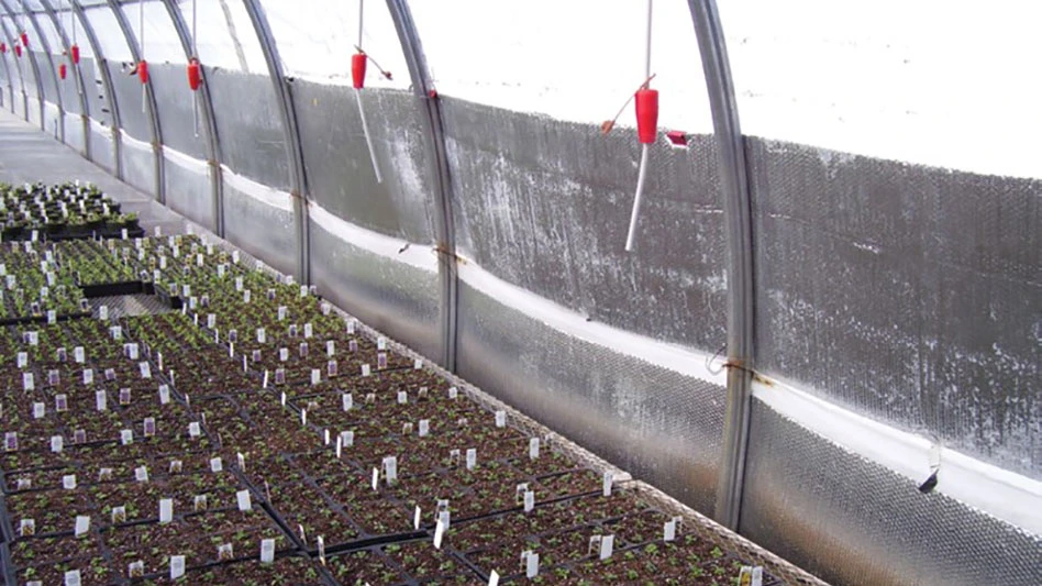 Growers should check with the building inspector or fire marshal to see if the material is allowed by the building code. In some cases, the officials may want the insulation covered with sheet rock or other material.