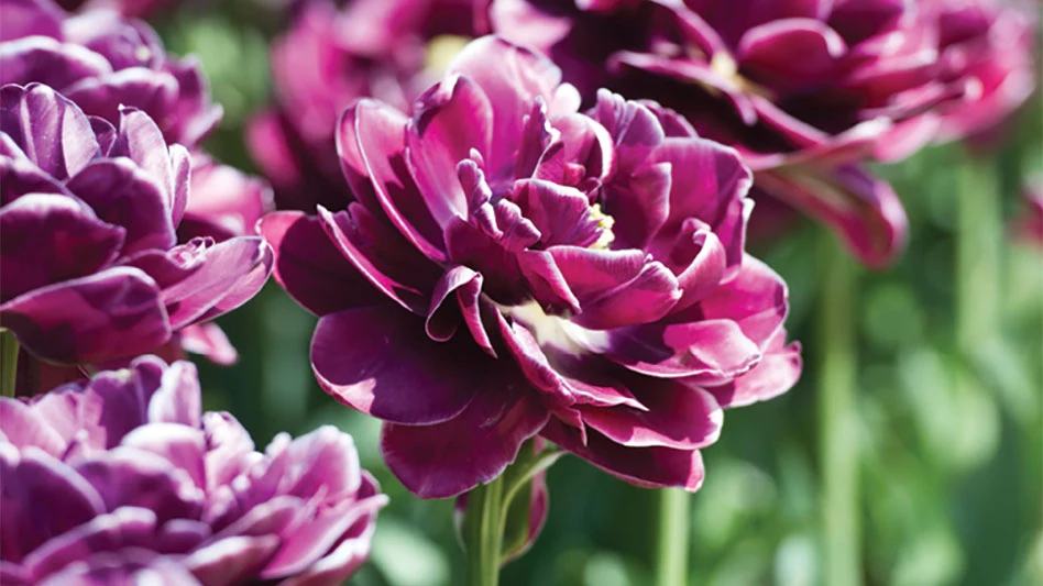 Long, strong stems, and a unique, moody flower color combination make this a favorite of both growers and florists. The variety has a long postharvest life. Some tulips are challenging to design with, but the more rigid stems of ‘Dream Touch’ are perfect for bouquets. One ASCFG member noted, “Tulips are at the top of my list for cut flowers, and ‘Dream Touch’ is stunning.” Others remarked that the green striping on the purple petals creates a unique color combination. Bulbs are consistently productive.