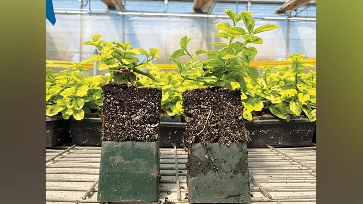 Mycorrhizal fungi are also helpful to plants dealing with salinity issues. In one study from Mycorrhizal Applications, researchers found that plants treated with mycorrhizal fungi maintained green leaves where others suffered from chlorosis and eventually necrosis due to high stress and high salinity conditions. “We’ve seen mycorrhizal fungi mitigate the uptake of those salts and balance some of that more toxic ion uptake, like with sodium,” Garcia says, adding that there is also some evidence that the fungi can even hold heavy metals in the hyphae and stop them from being delivered to the plant. “It’s like they know that the plant doesn’t need it and that the plant is going to hurt if it gets inside.”