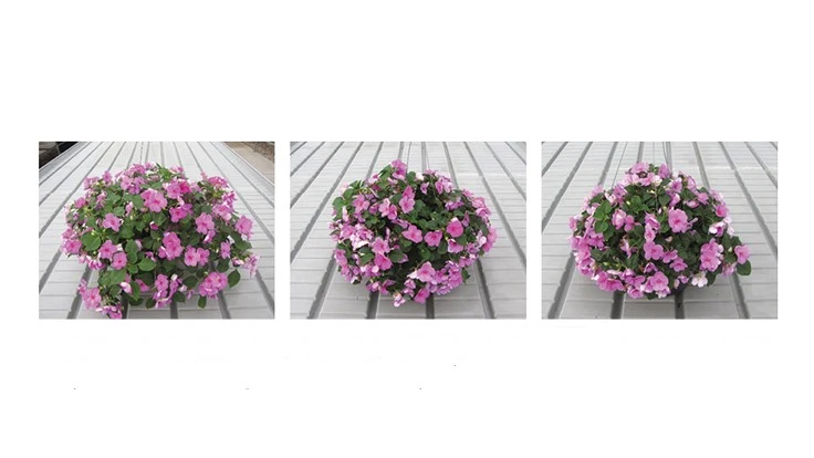One of Benton’s go-to PGRs is Topflor. “I think, by definition, whatever I do with Topflor would almost fall into a micro drench type of category,” Benton says. On sensitive varieties of calibrachoa, Benton generally applies a 1.5- to 2-ppm split application of Topflor, then makes the same application two weeks later and slowly eases into subsequent applications. On more standard varieties of calibrachoa, in situations when he’s pressed for time, Benton will take the plants off the potting line and immediately water in 4 to 5 ppm.