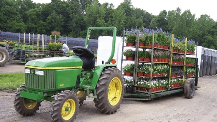 Plant handling is a major user of labor in the greenhouse and nursery industry. One to two cents is added anytime you handle a plant. For moving plants from a greenhouse to an outdoor growing area, wagons and trailers can be of considerable help. The following tips should help in making a selection: