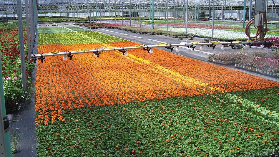 Design the automatic watering system for uniform coverage. The most uniform watering is achieved with flood benches, flood floors or a boom system. Drip systems do a good job if pressure compensating nozzles are used and the supply pipes are not too long. In overhead systems, the design should include double or triple overlap of nozzle patterns.