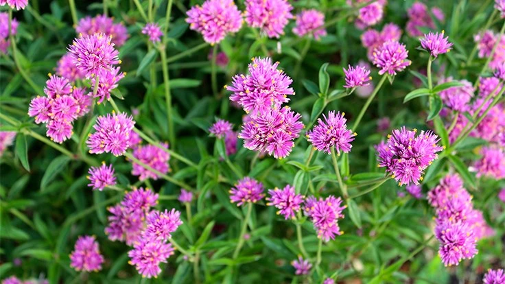The Gomphrena ‘Truffula Pink’ looks great even in 100-degree heat and above. This Gomphrena can be compared to that of ‘Fireworks’ but is much more compact and not as wild-looking.