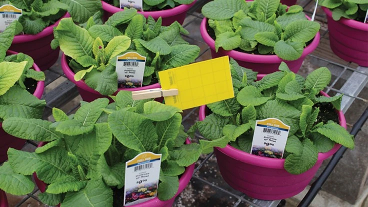 Since biological control is a preventative approach, it is important to develop a scouting/monitoring program that will allow you to determine the population dynamics (the relationship between pest populations and the environmental factors that may influence populations) and track trends in pest numbers during the growing season. Scouting/monitoring will result in more efficient timing of natural enemy releases. However, when releasing parasitoids, remove any yellow sticky cards for at least one week, as adult parasitoids are attracted to and will be captured on the yellow sticky cards.