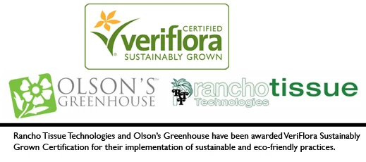 Rancho Tissue Technologies, a tissue culture plant producer in Rancho Santa Fe, Calif., has received VeriFlora’s Sustainably Grown Certification for its Stage III microcuttings and Stage IV liners. The company’s sustainability efforts encompass every aspect of the business including: selecting plants that require less water and fewer chemicals; recycling and reusing all lab vessels in which plants are produced; installation of new growth chamber lighting to reduce energy usage and costs by at least 25% and weekly employee health, safety and quality training meetings.
