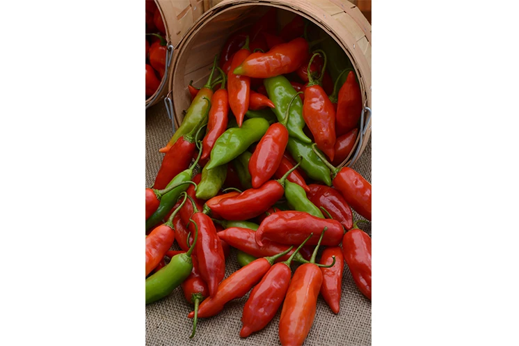 Aji Rico is the first of its kind: a hybrid hot pepper from the Capsicum baccatum species that matures early for short-season production or early summer enjoyment. The large plant produces many thin-walled, crunchy fruits which have a narrow conical shape. Fruit matures from green to red and can be eaten at any stage. “Ají” is the term for chili in South America. These fruits have a refreshing citrus flavor and warm heat level, perfect for eating fresh or cooking into salsas or hot sauces. Simply incorporate the desired number of seeds from the pepper to add some heat. Aji also dries well for a flavorful homemade paprika.