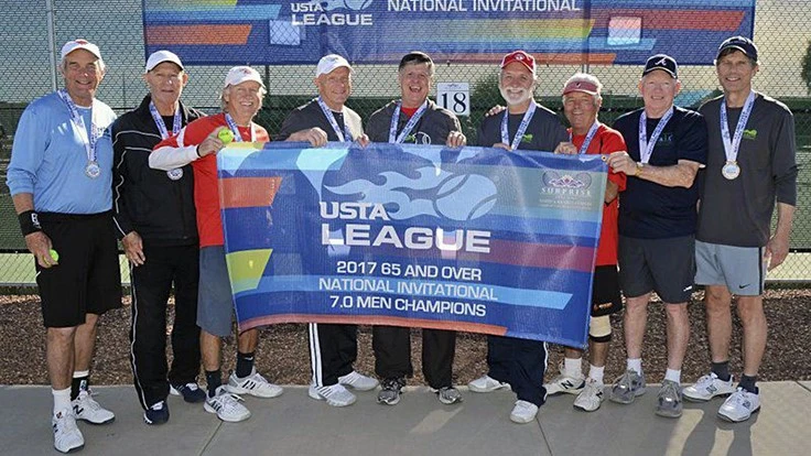 The players, competing in the 65-and-over age group, defeated 17 other teams to win their age group and win the championship.