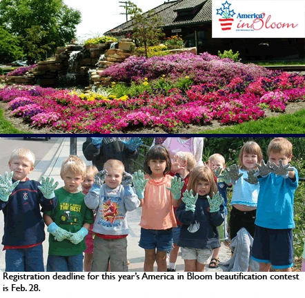 The deadline to register for this year’s America in Bloom community beautification contest is Feb. 28. Seventeen communities have already registered for this year’s contest.