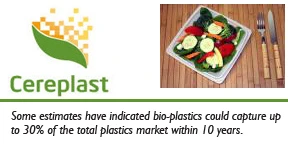 Cereplast, a manufacturer of bio-based, sustainable plastics, expects the U.S. bio-plastics market to top $10 billion in sales by 2020. As of 2007, the U.S. bio-plastics market accounted for approximately $1 billion in sales. Some estimates point to bio-plastics capturing up to 30% of the total plastics market within 10 years.