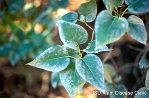 Powdery mildew on lilac. Photo: Iowa State University Plant Disease Clinic