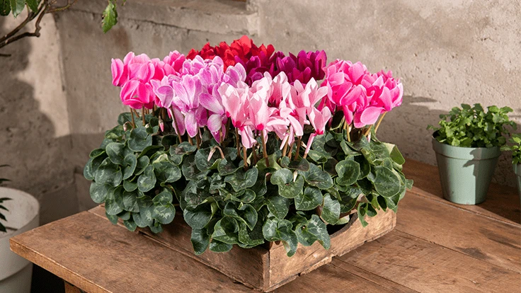 Special for the U.S. is Super Serie Elegante. This midi-flowered cyclamen is also perfect for warm climates. It flowers earlier and faster than other cyclamen and does not suffer from heat stress. The uniform built Elegante has a bit more open plant structure than other cyclamen.