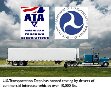 On Jan. 27 U.S Transportation Dept. began prohibiting texting by drivers (Federal Register Vol. 75, No. 17, Page 4305) of commercial vehicles such as large trucks and buses. The prohibition, which applies to interstate vehicles over 10,000 lbs., is the latest in a series of actions taken by the Department to combat distracted driving since a national summit on the issue last September.