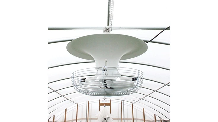 Ventilation plays a vital role in modern greenhouses. The vertical air flow (VAF) fan, manufactured by Vostermans, produces an air current that is forced outward and downward along the roof and walls of the greenhouse, and then is pulled upward through the crop. Using this type of fan can lead to a better and more uniform climate and it can also lead to energy savings. The V-Flo Fan offers growers the opportunity to reduce the negative impacts of humidity in a simple and energy efficient way, and it is also easy to mount in a greenhouse and easy to maintain. Contact the staff at CropKing for pricing information!