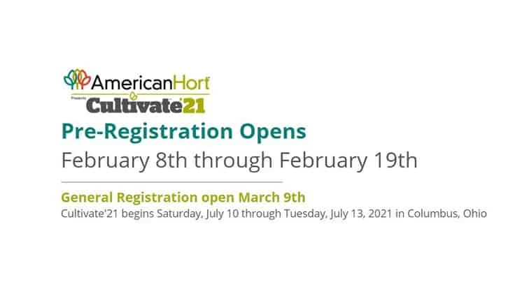 According to a press release, AmericanHort will be opening pre-registration for Cultivate’21 Feb. 8-19, 2021 with general registration beginning on March 9.