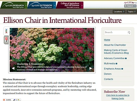 The Ellison Chair in International Floriculture has redesigned its Web site. The new site includes its blog Making Cents of Green Industry Economics, a Tags section that indexes blog entries posted over the past few years, a multimedia section with links to upcoming and previously recorded webinars and new content pages that include information businesses can use and incorporate.
