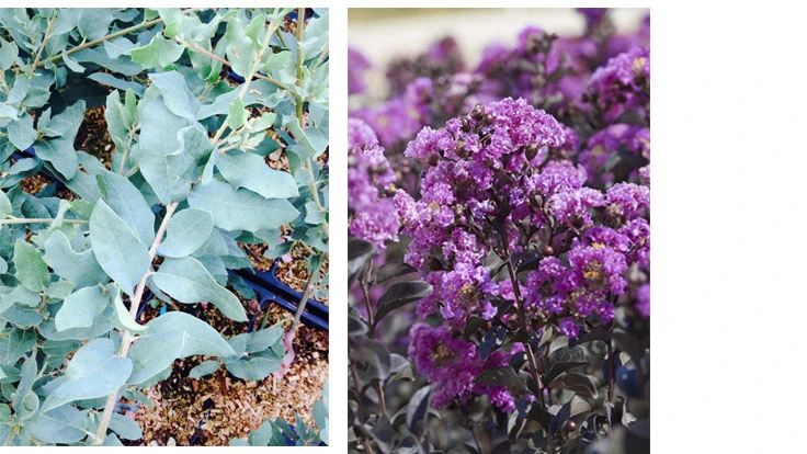 PHOTO: (left) Mesa De Mesa Southwest Oak; (right) Black Diamond Purely Purple Crape Myrtle
