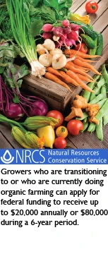 USDA-Natural Resources Conservation Service has announced a special initiative of $50 million to provide financial assistance for conservation practices to growers transitioning to organic farming or who are already certified for organic agriculture under new provisions of the 2008 Farm Bill. USDA is allowing until March 12 because of delays in getting the rules approved. Organic or transitioning farmers may apply for funds through the Environmental Quality Incentives Program to receive up to $20,000 annually or $80,000 during any 6-year period.