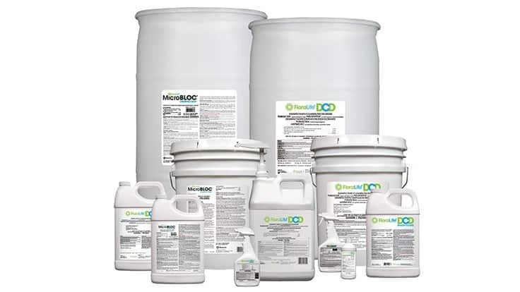FloraLifeD.C.D. and FloraLife MicroBLOC kill and prevent bacterial, microbial growth and viruses on hard, nonporous surfaces. In areas where there is no contact with food, the cleaners can be sprayed or wiped onto the surface that needs to be disinfected and air dried. For areas in contact with food, surfaces can instead be rinsed after application. To determine which surfaces need to be rinsed off, users should follow label instructions. Instructions also apply to animal contact surfaces.