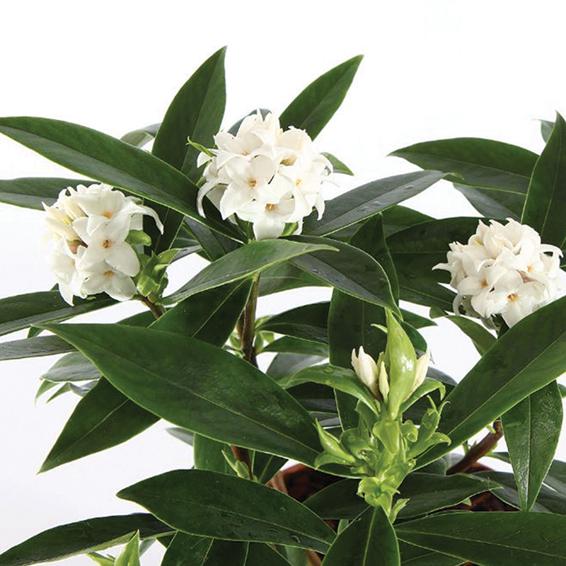 - Daphne Perfume Princess White (Daphne odora ‘Daplur2’ PP30790): Bred by Mark Jury and Anthony Tesselaar, introduced by Anthony Tesselaar Plants and submitted by Briggs Nursery, which said, “This chance mutation of Perfume Princess came from the work of renowned plant breeders Mark Jury and Anthony Tesselaar. Their goal was to combine the tough, strong growth habit of Daphne bholua types with the heady fragrance and flowering performance of Daphne odora varieties. Like its parent, it blooms early and long with intoxicating fragrance with citrus undertones. The deliciously fragrant bright white flowers emerge in mid-winter and continue through spring, blooming along the stem as well as at each branch tip. The plant maintains a dense upright bush shape with glossy green pointed leaves. Good disease resistance. Unfussy, grows almost anywhere even in full sun. It'll grow in any soil but prefers soils that are slightly acid and free-draining. Full sun to part shade. Grows to 3 feet wide by 4 feet tall. Zones 7a to 10b.” The plant is available as #2 containers and quart liners from Briggs Nursery.
