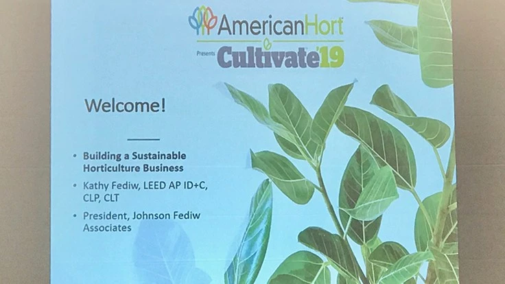 “What is sustainability?” asked Kathy Fediw, president of Johnson Fediw Associates, an interiorscaping company in The Woodlands, Texas. “It’s being eco-friendly and socially responsible for the long-term and well-being, which is probably the hottest business trend right now.”