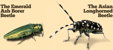 Pictured: Growers can help determine if emerald ash borer and Asian longhorned beetle have invaded their neighborhoods by reporting sightings of these pests at track down