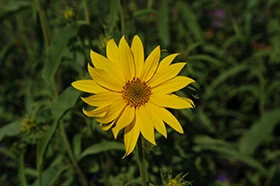 This form of Maximilian’s Sunflower was selected for its shorter stature of 5- to 6-feet tall stems along with a slightly earlier bloom time. Intrinsic Perennial Gardens says it reliably blooms in September before the end of the season and in conjuntion with most Aster and Big Bluestems, and other tall fall grasses like Panicum and Miscanthus.