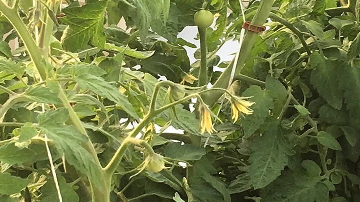 Tomatoes require pollination to set fruit. Growers typically use bumblebees to pollinate in a greenhouse because they are about 85 percent effective, while a pollinating wand is about 80 percent effective. Alternatively, growers can shake the support wires with a broomstick, which is about 70 percent effective, Kispert said. Greenhouse cucumbers, meanwhile, don’t require pollination or have seeds.