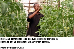 An increasing number of vegetable greenhouses are being constructed by growers in Kenya seeking to cash in on the sale of locally-grown produce. The Daily Nation reports that the country’s Horticultural Crops Development Authority has launched a campaign to introduce greenhouse technology in western Kenya. The biggest obstacle for interested growers is the high initial set-up cost. The wood and polyethylene greenhouses that are equipped with drip irrigation and insect screening provide growers with better growing conditions and pest and disease control than field production. Growers are producing a variety of vegetable crops, including tomatoes, cucumbers, peppers and carrots. The newspaper reports that the rapid spread of greenhouses has raised the concern of some Maasai pastoralists who worry the greenhouses are covering vital grazing land, blocking traditional herding routes and reducing the amount of water available for people and livestock.