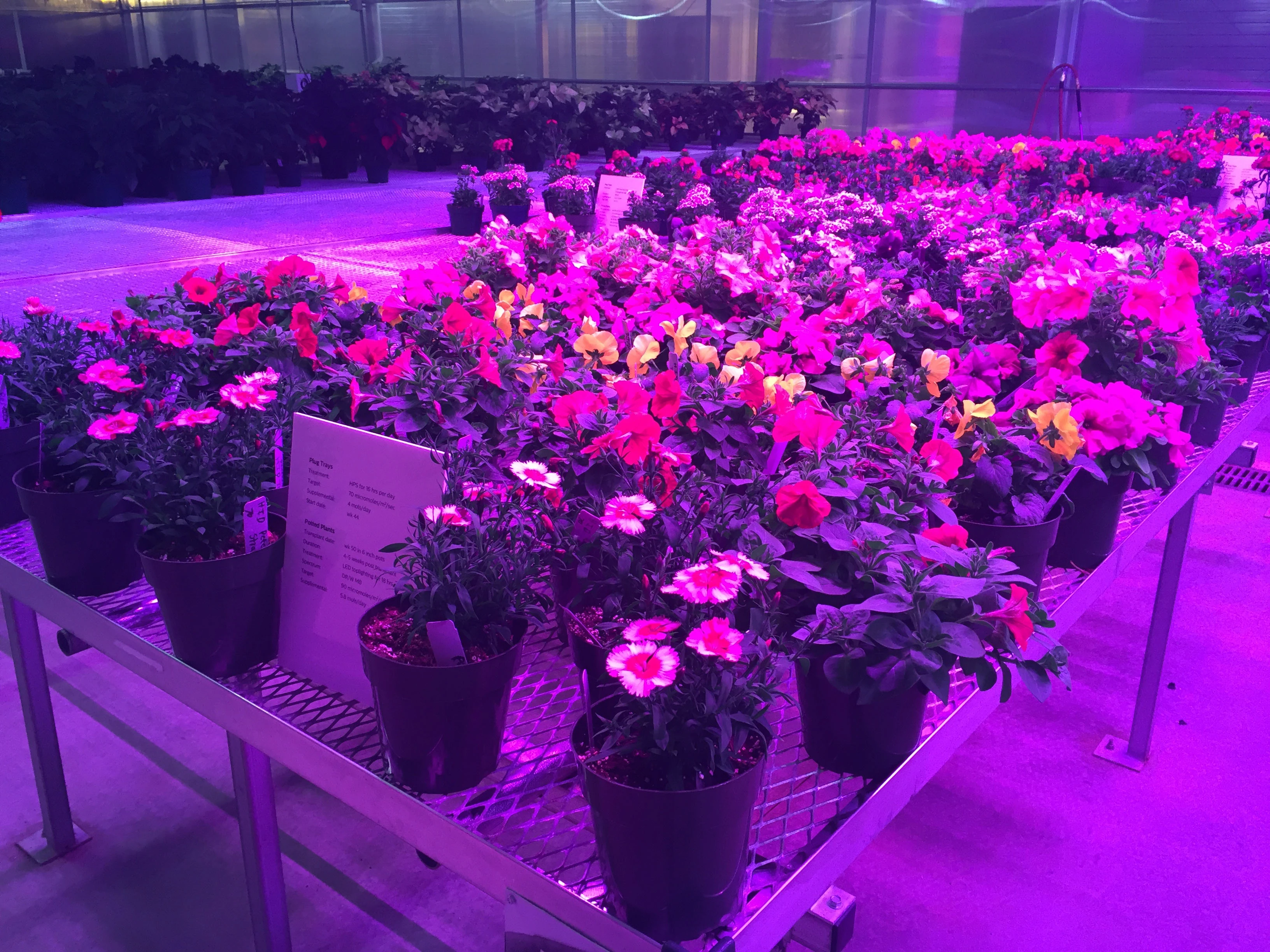 Hernandez’s research looking to compare three different types of supplemental lighting – LEDs, LEDs with plant growth regulators (PGRs) and high pressure sodium (HPS) bulbs with PGRs – against a control group of plants receiving no supplemental lighting. The three ornamental crops studied in Hernandez’s research were petunia plugs, dianthus and geraniums. He also studied how cucumber seedlings responded to red and blue flux ratios and the physiological responses of tomato seedlings under similar red and blue lights. Each species in the trial was picked because they are commonly grown and are in high demand.