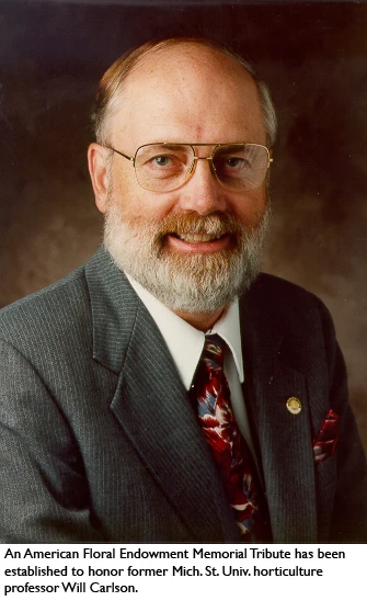 A Memorial Tribute has been established within the American Floral Endowment honoring deceased Mich. St. Univ. horticulture professor Will Carlson. The tribute was established by Jack Van Namen of Vans Inc., a long-time friend and former student of Dr. Carlson.