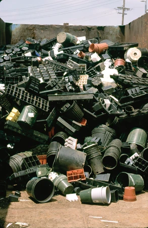 The collected plastic is granulated on-site into chips, which are transported to manufacturers for recycling into other products including lumber, pallets and garden containers. Some of the pots are transported to East Jordan Plastics in Michigan, which manufactures plastic containers and trays.