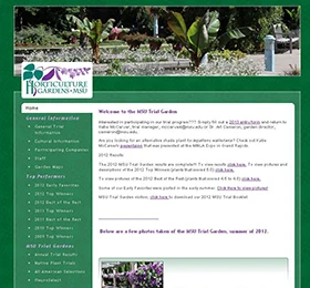 The performance of each plant in the trials is evaluated bi-weekly by Department of Horticulture staff on vigor, uniformity, ornamental value-flowers and foliage. In addition, disease and insect susceptibility is noted as well as effects of the climate that season. Seventeen companies supplied plants in 2012. Plants are rated on a 1.0 to 5.0 scale with 5.0 being the best performers.