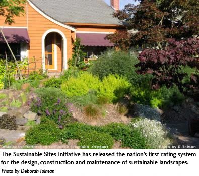 The Sustainable Sites Initiative has released the nation’s first rating system for the design, construction and maintenance of sustainable landscapes, with or without buildings. It was developed through a partnership of the American Society of Landscape Architects, the Lady Bird Johnson Wildflower Center and the U.S. Botanic Garden. The initiative’s rating system represents 4 years of work by the country’s leading sustainability experts, scientists and design professionals, as well as public input.