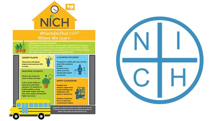 NICH - National Initiative for Consumer Horticulture – encourages those in the horticulture industry to share #PlantsDoThat Inside Where We Learn. It illustrates that classrooms with plants have many positive effects, including: