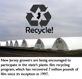 Since the program was initiated in 1997, New Jersey growers have recycled more than 7 million pounds of used film. During 2009, 935,920 pounds of film were recycled. This was a 49% increase over 2008 and the largest volume of nursery and greenhouse film recycled in a single year since the program was started.
