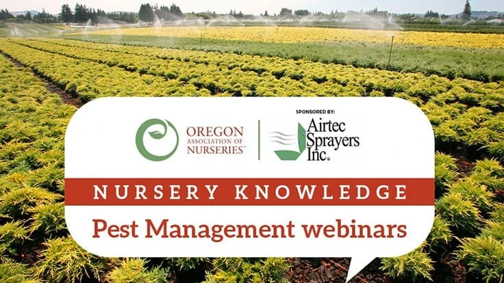 The Oregon Association of Nurseries, in partnership with Airtec Sprayers, is hosting a three-day webinar series to help growers stay up-to-date on the latest nursery pest management techniques and safety standards.