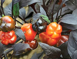 2 new ornamental pepper cultivars developed by USDA-Ag Research Service scientists will become available to consumers in 2010. The patented Lil’ Pumpkin produces black foliage and orange pumpkin-like fruit. Patent-pending Pepper Jack bears greenish-black foliage and a mix of both orange and black, cone-shaped fruit, similar to Halloween candy corn. They were bred by ARS plant geneticists John Stommel and Robert Griesbach. The plants were developed with both ornamental and culinary markets in mind. The peppers’ vibrant colors and unique shapes provide ornamental interest and their spicy flavor may be of culinary interest to hot-pepper lovers. The peppers will be marketed as potted annuals. “Similar to culinary peppers, ornamental peppers perform best in high light and warm temperatures,” said Stommel. Lil’ Pumpkin and Pepper Jack have been licensed for retail sale by McCorkle Nurseries in Dearing, Ga.