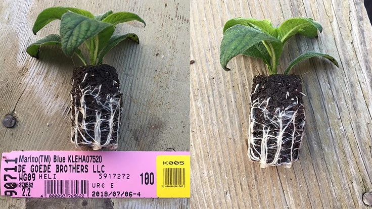 Because the crops are branching well, the team doesn’t have to take the first pinch off, so color arrives earlier in the spring than in previous years, Foster says. At the same time, the plants are requiring more fertilizer to keep them green, which she suspects is due to their faster rooting.