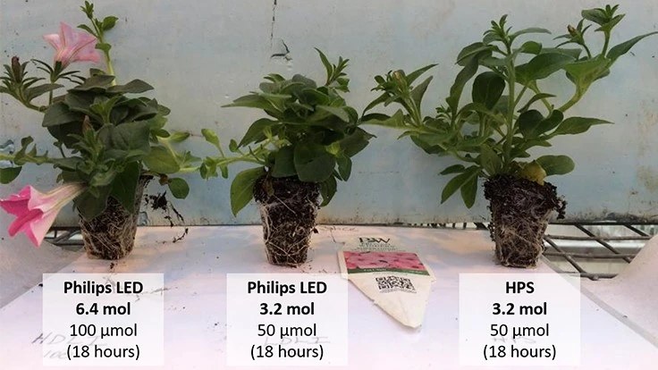 Start by measuring the inside light levels of your current lighting and compare them to the daily light integral (DLI) for optimal growth of the crop being grown in the trial. This will help you determine if part of the lighting trial is to track the results of delivering increased light levels, or if the trial is to see the results of growing under a different spectrum. You want to see the effect of more light as well as understand the crop response to the focused red and blue spectrum of LEDs.