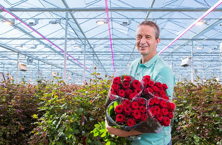Porta Nova is a leading rose nursery in The Netherlands. The company was created as a result of a merger of three rose nurseries under the names of Aad Luijk, Leon Dukker and Nico van Vuuren. Since they began in 2002 on 4.3 hectares, they have steadily grown to their current size of 20 hectares. They have been trialing and working with Philips LED lighting since 2015.