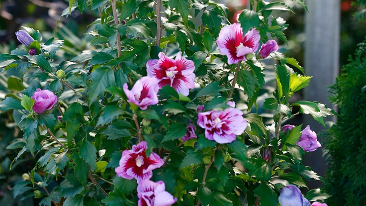 Pillar is a totally unique rose of Sharon, growing naturally as a